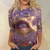 Dámské módní ležérní tričko s kulatým výstřihem a tříčtvrtečním rukávem s potiskem karnevalu