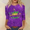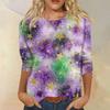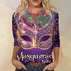 Dámské módní ležérní tričko s kulatým výstřihem a tříčtvrtečním rukávem s potiskem karnevalu