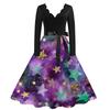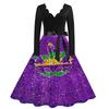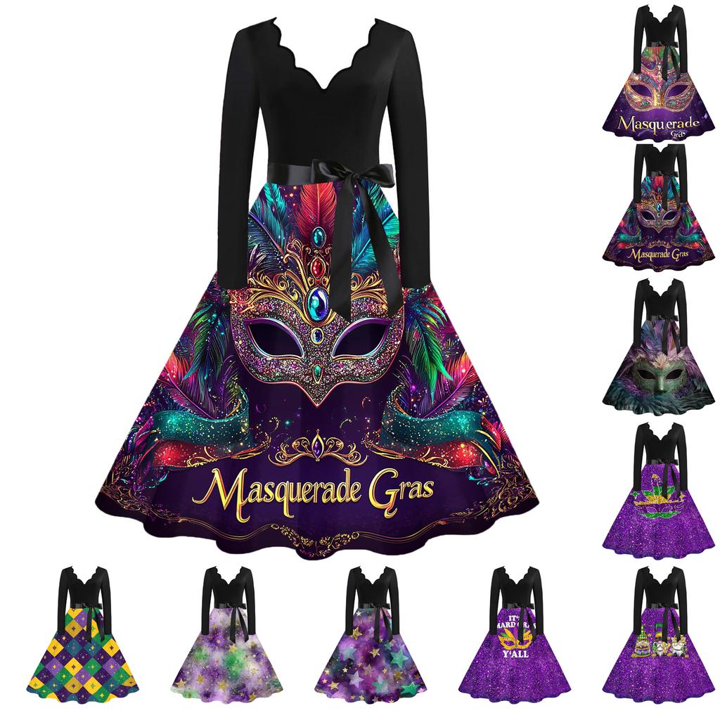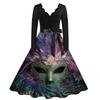 Dámské ležérní módní šaty s výstřihem do V a vintage potiskem karnevalu