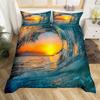 Hawaii Vacation Beach Duvet Cover Cartoon Surfing Quilt Cover Microfiber Tropical Palm Tree Starfish Ocean Landscape Bedding Set