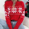 Christmas Woman Sweater Autumn Winter Casual Contrast Color Snowflake Pattern Knitted Tops Round Neck Long Sleeved Pullover