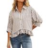 Women's Fashion Commuting Striped Lace Hem Loose Shirt Quarter Sleeve Shirt