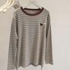 Korejské pruhované pulovry s kontrastními barvami, podzimní vintage dámské oblečení s kulatým výstřihem, patchworkové stylové nášivky, volná trička