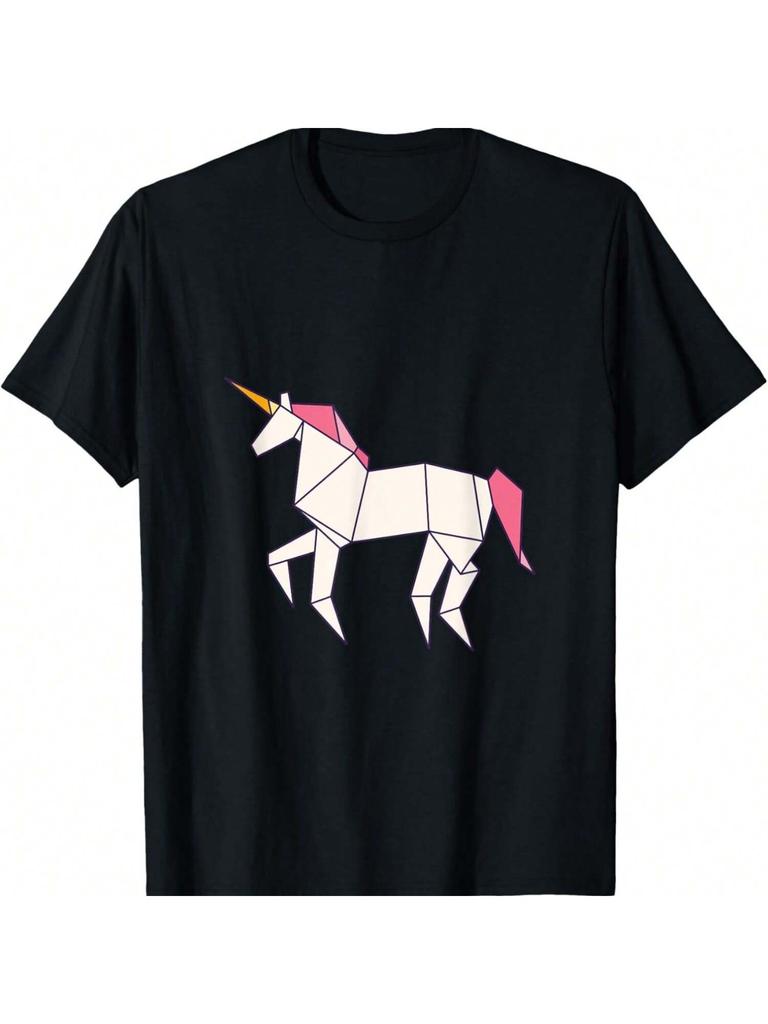 Geometric Origami Cat And Crane Women's Cotton TShirt, Premium Cotton Quality Print, Durable And LongLasting, Casual Fashion Style