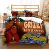 Grizzly a lemingové Kreslený Anime Potisk Ložní souprava Povlak na přikrývku Povlak na polštář Ložní souprava Lněné prostěradlo Přikrývka Queen King Size