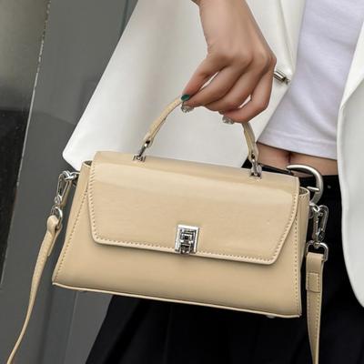 Ležérní styl PU kožená kabelka přes rameno pro ženy jednobarevná klopová crossbody taška
