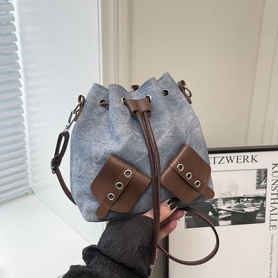 Design Splicing Fashion Drawstring Women Casual Shoulder Bag For Use Daily