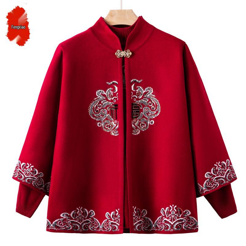 Elderly Women's Autumn Knitted Cardigan Two-Piece Set