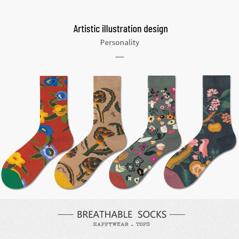 Ponožky Tide Retro Flower: Bavlněné ponožky střední délky pro ženy a muže, trendy párový styl pro jaro/podzim.