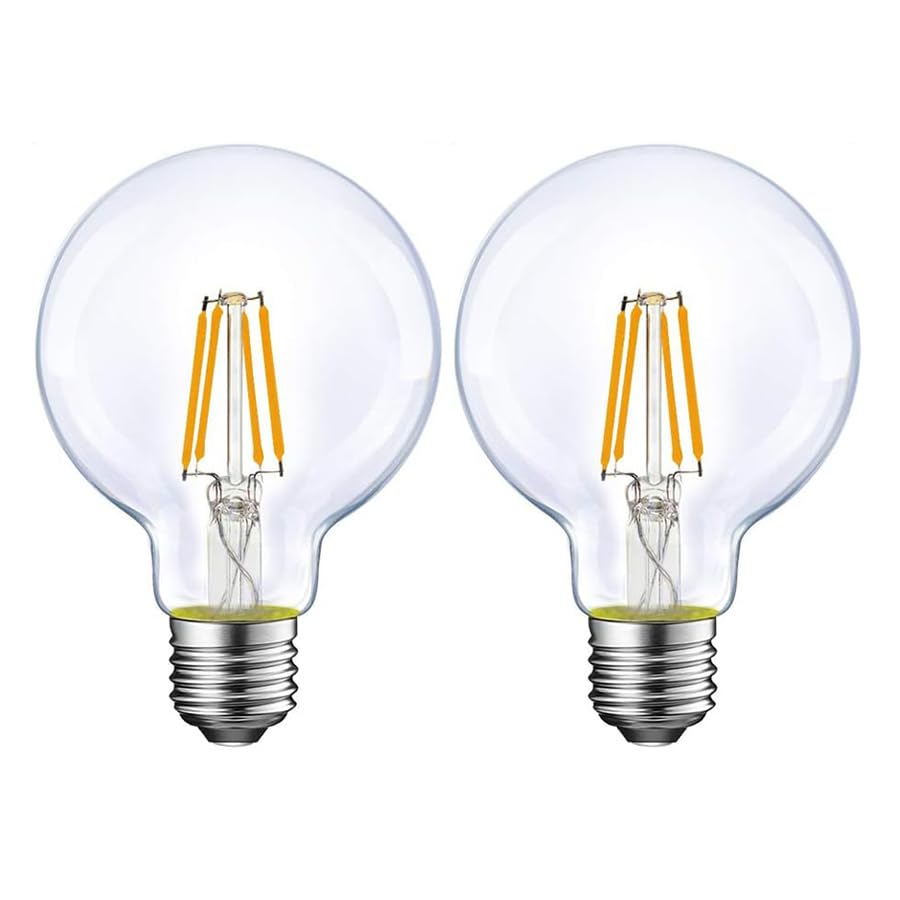 LED Edison Bulb G95 (6W) 60W Equivalent, E26 Base, Warm White, 3000K, Dimmable, Clear Filament, LED Ball Bulb, Stylish, Antique-Style, Ambient
