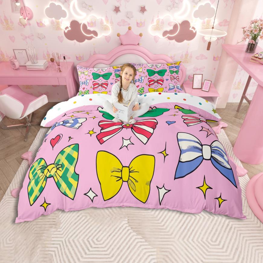 Homewish Ribbon Bow Knot Duvet Cover Set,Princess Bowtie Bedding Set,Rainbow Cartoon Bow Bed Set For Girl