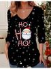 3D Vánoční Potisk Módní Ležérní Dámské Tričko s V-výstřihem a Dlouhým Rukávem - Oblečení na Novoroční Párty Sváteční Dárek