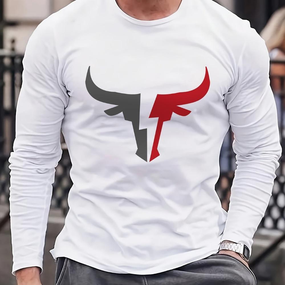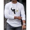 Men's Casual Sports Bull Pattern Printed Round Neck Long Sleeved T-shirt Top