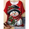 Elegantní červený vánoční top s potiskem sněhuláka Dámské tričko s krátkým rukávem Ležérní zimní a letní halenka Nadměrné Y2k dámské oblečení