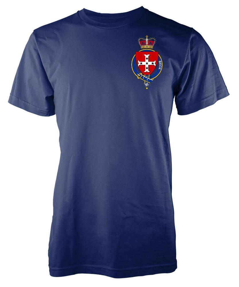 Personalised Beck Welsh Family Name T-Shirt Family Crest Badge Coat Of Arms