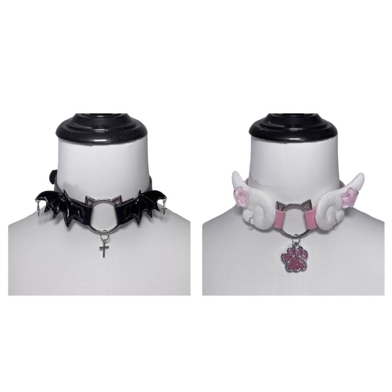 Punk Cat Necklaces Leather Wing Chokers Wing Necklaces Goth Neck Strap Alloy Material Party Accessories for Hot Girls