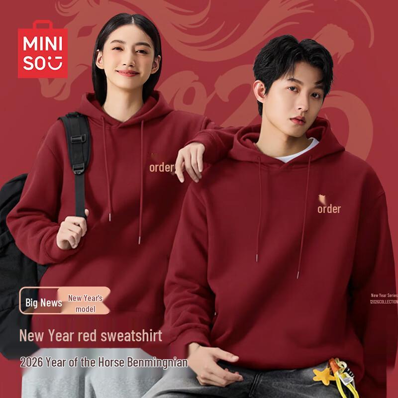 Mikina s kapucí MINISO s potiskem roku Ma a fleecovou podšívkou