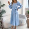 Dámské jednobarevné módní šaty s klopou a dlouhým rukávem