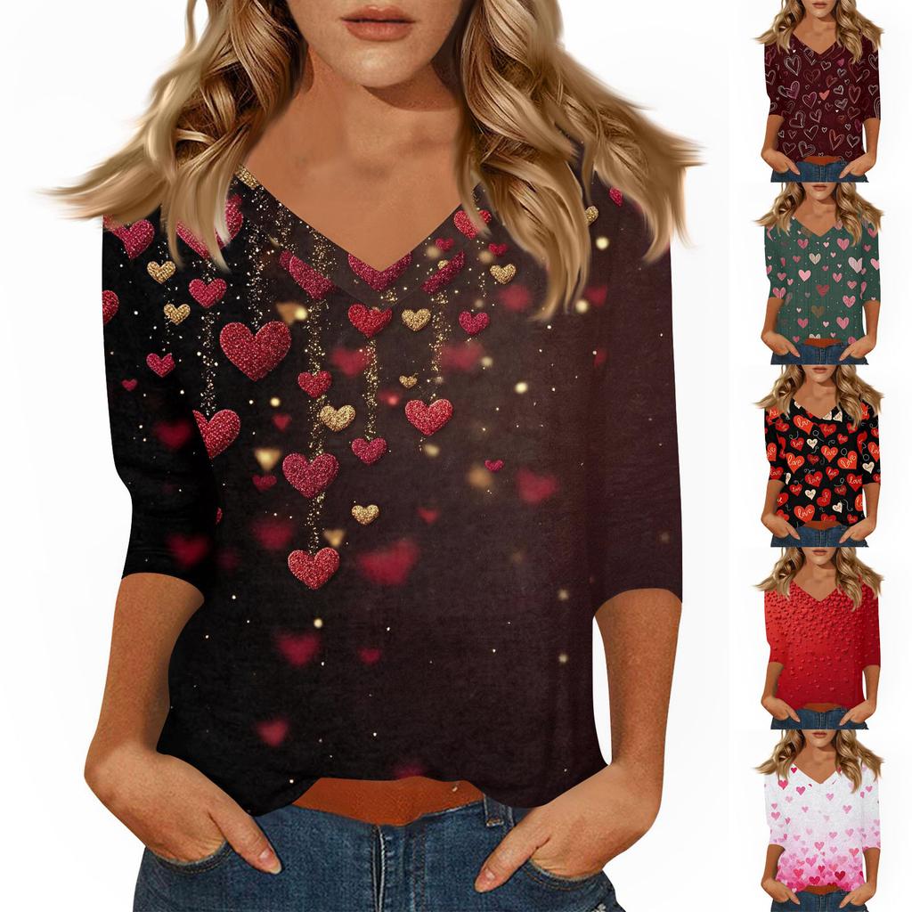 Dámské tričko s potiskem 3/4 rukáv denní víkendová móda základní véčkový výstřih běžný top