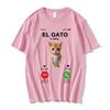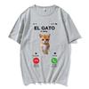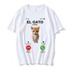 Creative Humor Sad Crying Cat Printed Pure Cotton T-shirt Men and Women with The Same Round Neck Cotton Short-sleeved T-shirt