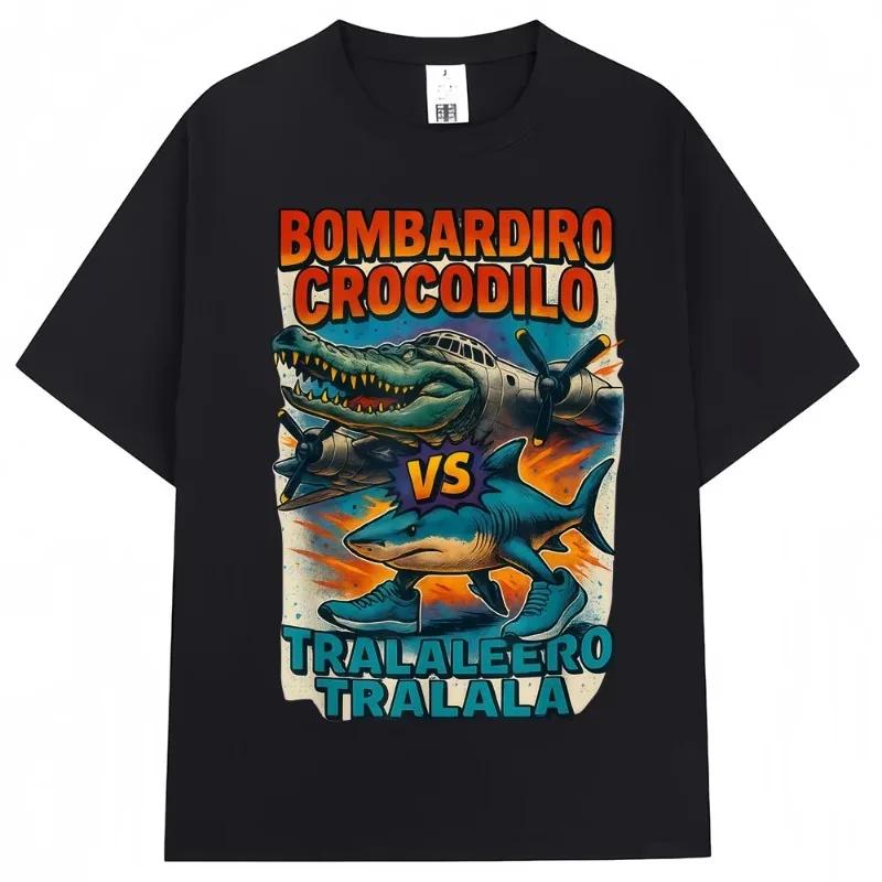 Bombardiro Crocodilo VS Tralalero Tralala T-Shirt Funny Italian Brainrot Meme Popular T-shirts Men Women Loose Cotton Tees