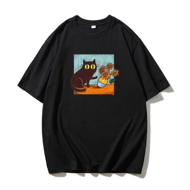 Roztomilé Zábavné Kočičí Pánské Tištěné Tričko s Krátkým Rukávem Letní Ležérní Všestranné Streetová Atmosféra Chladivé Prodyšné Nadměrné Top