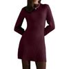 Dámské elegantní pletené šaty áčkového střihu s dlouhým rukávem a polovyvýstřihem