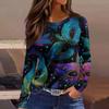 Dámské Módní Ležérní Krk Dlouhý Rukáv Spodní lem Rozdělený Karnevalový Potisk Tričko Top