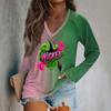 Women's Long Sleeve Plunger Sleeve Witch Printed Casual Top T-Shirt