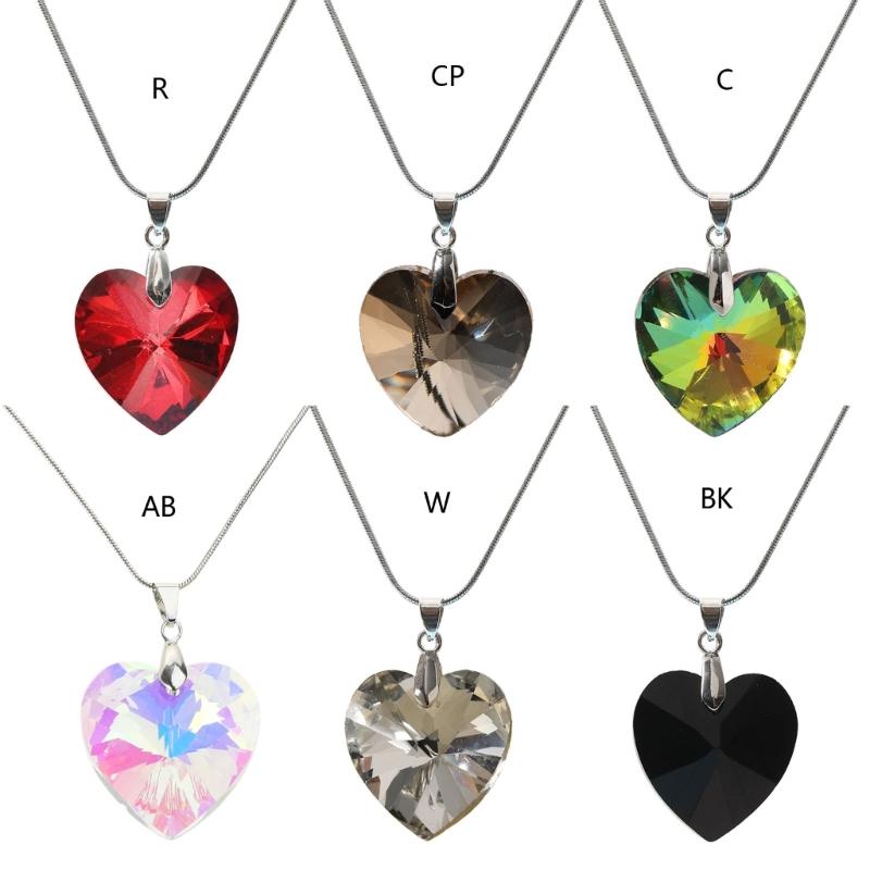 Glass Heart Pendant Necklace Simple Clavicle Chain Adjustable Collar Necklace Jewelry Stainless Steel Chain Necklace