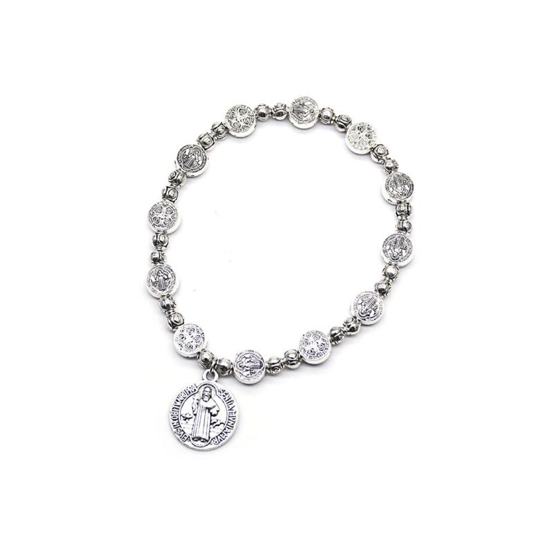 Jesus Crucifix Bracelet Silver Color Jesus Jewelry Rosary Centerpiece Sacred Mercy Saint Icons Religious Beaded Bracele