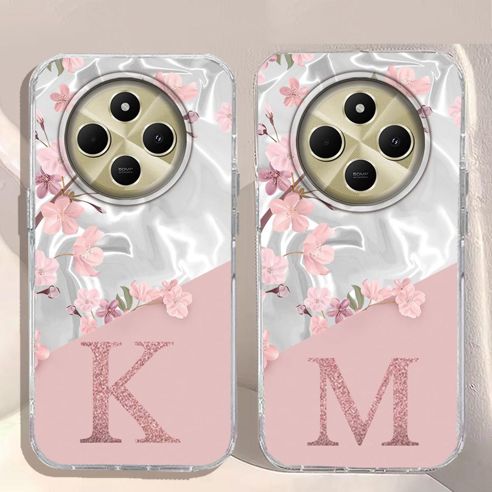A Z Pink Letter Peach Flower Shockproof Phone Case For Xiaomi Redmi Note 14 15 Pro+ Plus 15C 14C Silicone Couple Shell Cover