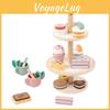 This wooden multi-layer dessert stand supports imaginative play by simulating a three-tier cake tower, ideal for early childhood education. Crafted from durable wood, it measures approximately 10 inches tall with a 7-inch diameter base, promoting fine motor skills, hand-eye coordination, and interactive learning. Suitable for children of all ages, it encourages creative role-playing during indoor activities or pretend tea parties. Easy to clean with a damp cloth, this versatile toy fosters interest cultivation and family bonding.
