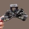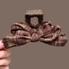 1pc Coffee Grey Grid Pattern Grab Clip Handmade Bow Shaped Two tone Shark Clip Small and Retro Style Brain Spoon Shark Clip