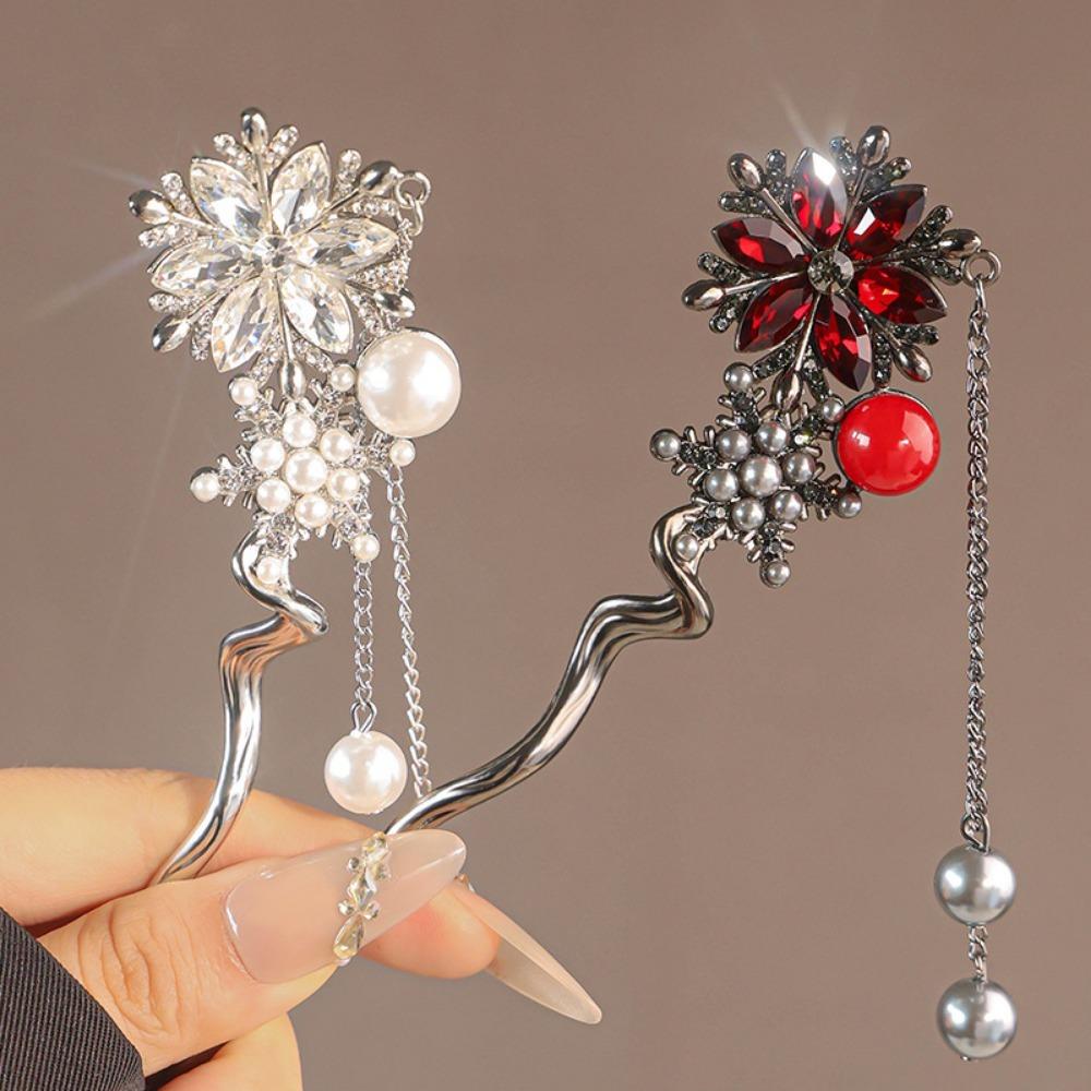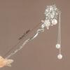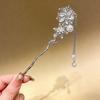 Korean Retro Pearl Rhinestone Tassel Hair Sticks for Women Zircon Crystal Flower Elegant Hair Combs Women Daily U-Shaped Hairpin