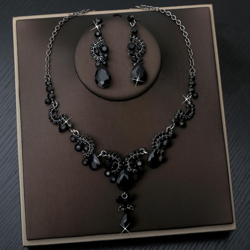 3pcs High-end Luxury Mysterious Black Droplet Gemstone Women's Necklace Dignified Elegant Banquet Dress Niche Design Jewelry Set