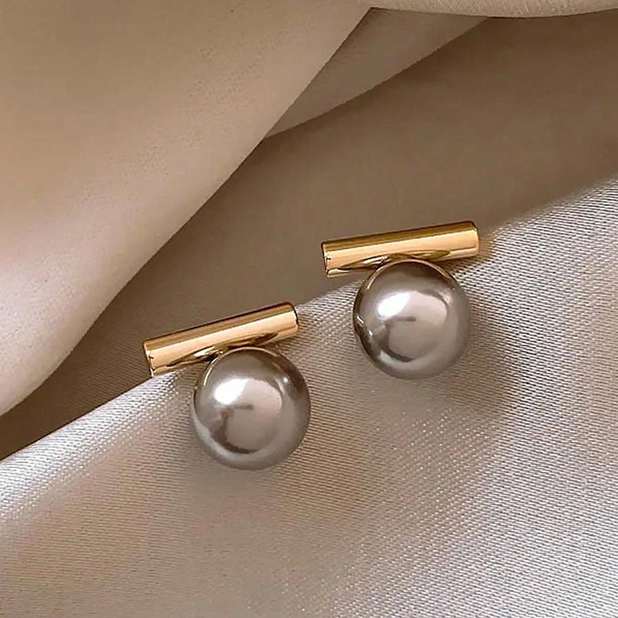1 Pair Retro French Earrings Minimalist Gray Artificial Pearl Earrings Fashion Jewelry for Girls' Gatherings Daily Wear Earrings