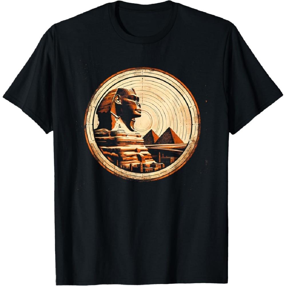 Ancient Treasures Magnificent Sphinx & Pyramids Design T-Shirt, Small, Black
