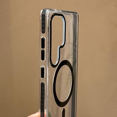 Luxusní bezdrátové nabíjecí pouzdro MagSafe pro Samsung Galaxy S23 S22 S21 S24 Plus Ultra S21 S23 FE Plus měkký nárazníkový kryt MagSafe