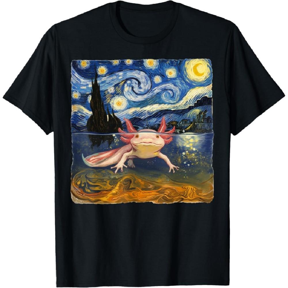 Axolotl Hvězdná noc Van Gogh Vtipné dárky pro muže ženy dítě tričko
