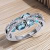 Huitan Cross Band with Blue Cubic Zirconia New Women Rings Fashion Design Female Finger Accessories Daily Wearable Party Jewelry