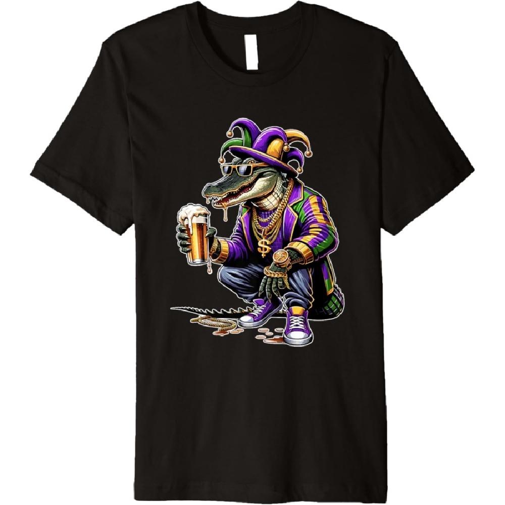 Beads & Bling Gangster Mardi Gras Gator Alligator Jester Premium T-Shirt