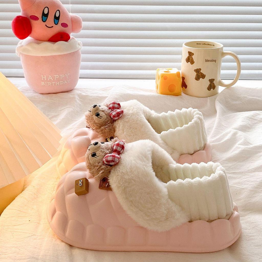 Women's Removable Cotton Slippers, Super Cute EVA Thick Sole, Indoor/Outdoor, Plus Velvet Warm, Waterproof, Perfect for Autumn and Winter.