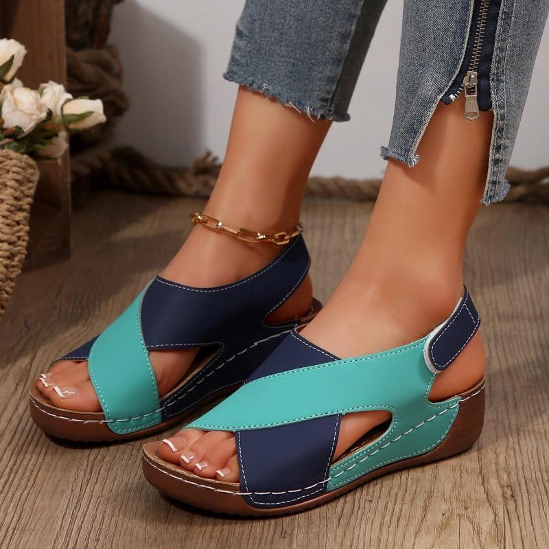 Women’s Platform Peep-Toe Colorblock Sandals with Velcro Straps and Breathable Cutout Design for Wide Sizes