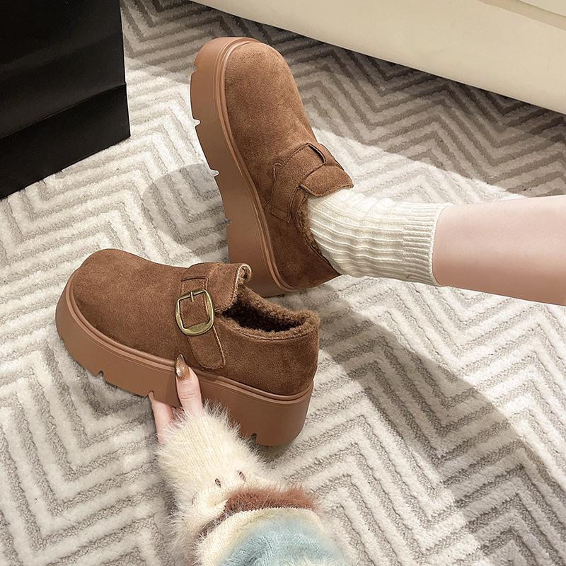 Women's soft elastic thick sole heightening winter fur one warm cold padded snow boots non-slip wear casual sports short cotton boots