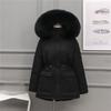 Women Padded Coat Faux Fur Collar Hooded Parkas Korean Big Size Cotton Jaqueta Waist Drawstring Midi Lenght Jackets
