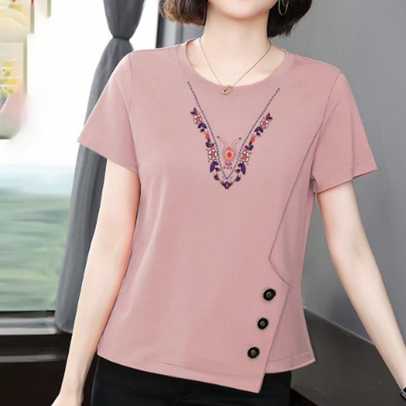 Summer Pure Cotton Short Sleeved Top for Women Summer Plus Size Loose Middle-aged Mother All Cotton Half Sleeved T-shirt