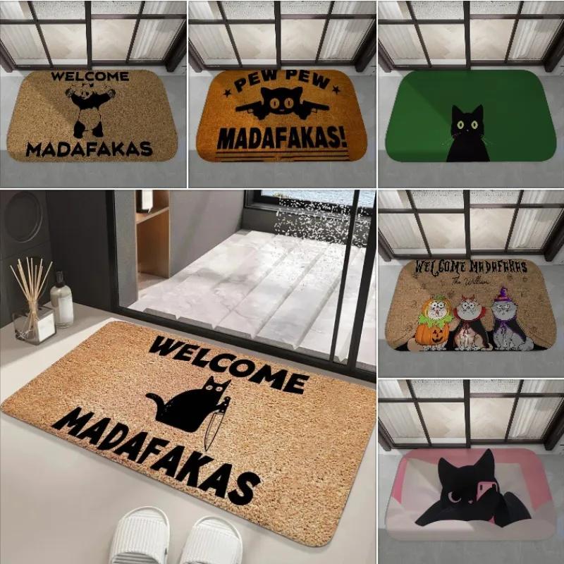 Disney Dark Cat Welcome Madafakas Floor Mat Entrance Door Mat Rectangle Home Soft Badmat Front Door Indoor Outdoor Mat