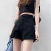 Classic and Minimalist Fashion Versatile Women's High Waist Summer Skinny Rolled Edge Loose A-line Wide Leg Outside Wear Denim Shorts Individuality