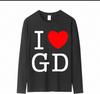 Léto 2025 Nové I LOVE GD Ploché tričko 100% Bavlna Krátký rukáv Ležérní tričko Potisk písmen Pamětní koncertový merch tričko